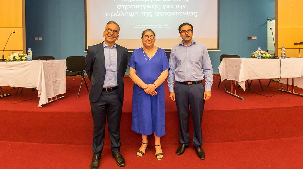 Επιπρόσθετα, στην Ημερίδα ανακοινώθηκε η ολοκλήρωση της συγγραφής της Εθνικής Στρατηγικής της Κύπρου για την Πρόληψη της Αυτοκτονίας. Στην Επιστημονική Έκθεση, την οποία ετοίμασε επιτροπή εμπειρογνωμόνων περιγράφεται η υφιστάμενη κατάσταση στην Κύπρο, από τους εμπλεκόμενους εκπρόσωπους Υπουργείων και επιστημονικών φορέων, εκπρόσωπους του Οργανισμού Ασφάλισης Υγείας (ΟΑΥ), ακαδημαϊκούς και άλλους ειδικούς επί του θέματος ενώ αναγράφονται αναλυτικά σε 5 διακριτούς πυλώνες οι δράσεις που θα πρέπει να υλοποιηθούν βάση προτεραιότητας. Η σχετική Έκθεση στην παρούσα φάση τυγχάνει τεχνικής επεξεργασίας από τους αρμόδιους λειτουργούς του Υπουργείου Υγείας – Διεύθυνσης Υπηρεσιών Ψυχικής Υγείας (ΔΥΨΥ) ώστε να κατανεμηθούν οι σχετικές αρμοδιότητες σε κάθε τμήμα / φορέα / Υπουργείο και να γίνει η σχετική κοστολόγηση.