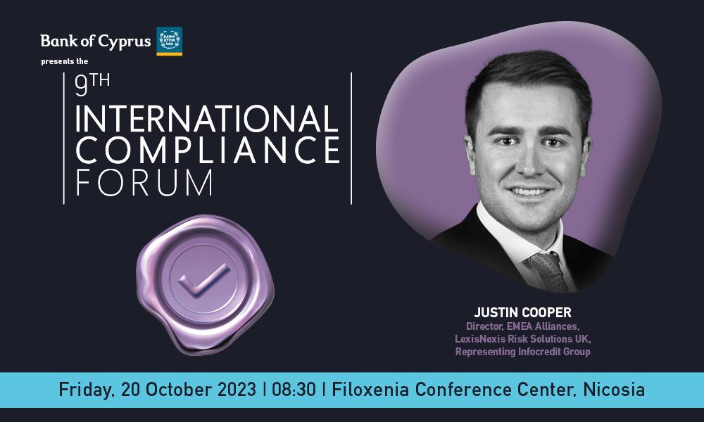 Για το πώς οι Οργανισμοί μπορούν να περιηγηθούν στην επιτακτική ανάγκη της κανονιστικής συμμόρφωσης και να προσφέρουν εξαιρετική εμπειρία στον πελάτη θα μιλήσει στο International Compliance Forum που παρουσιάζει η Τράπεζα Κύπρου, ο Justin Cooper, Director, EMEA Alliances, LexisNexis Risk Solutions UK ο οποίος θα εκπροσωπήσει την Infocredit Group.