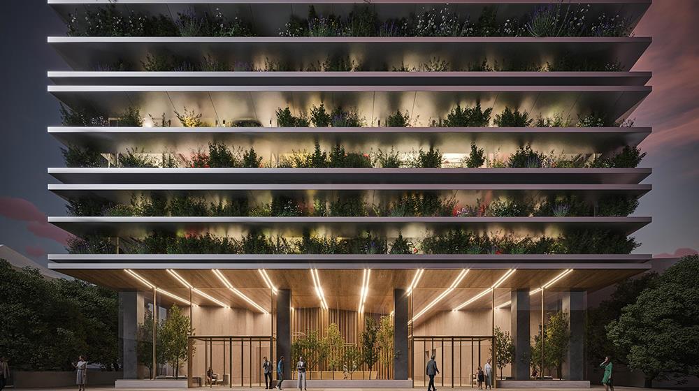Η βλάστηση που περικλείει τους ορόφους του νοσοκομείου, βυθίζει οπτικά το κτίριο στο πράσινο, ενώ με το εξειδικευμένο σύστημα σκίασης που λειτουργεί αποτελεσματικά στην ενεργειακή εξοικονόμηση, οι εσωτερικοί χώροι θα πλημμυρίζουν με απαλό φυσικό φως.