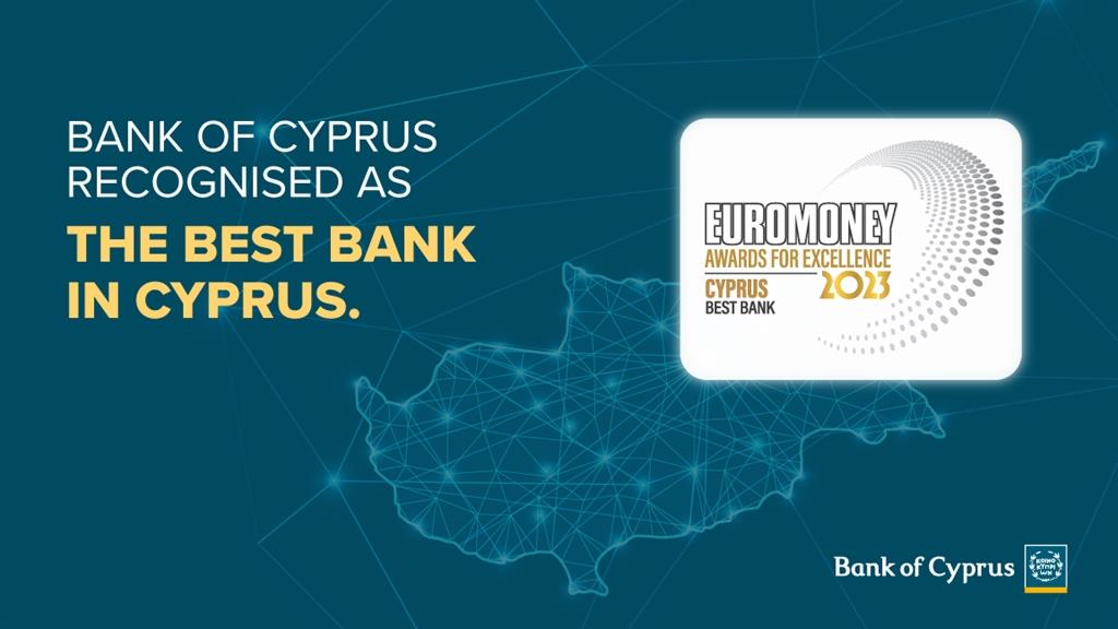 Για όγδοη χρονιά, η Τράπεζα Κύπρου βραβεύθηκε ως η καλύτερη Tράπεζα στην Κύπρο για το 2023. Πρόκειται για άλλη μια σημαντική διάκριση που έχει προστεθεί στο ενεργητικό της Τράπεζας, στο πλαίσιο των βραβείων Awards for Excellence 2023 που διοργάνωσε το διεθνές, έγκριτο περιοδικό Euromoney.
