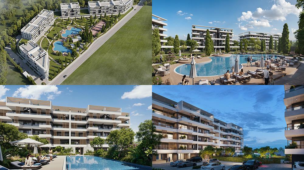 Σε έκταση 4.870 τ.μ., το masterplan τοποθετεί στρατηγικά τέσσερα οικιστικά κτήρια γύρω από ένα γραμμικό πάρκο, με κοινόχρηστη πισίνα και ειδικό χώρο στάθμευσης.