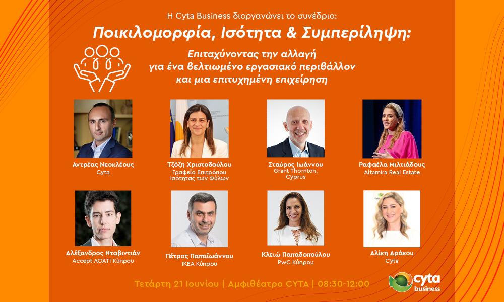 Στο πλαίσιο αυτό, η Cyta Business, ως πρωτοπόρος οργανισμός σε θέματα συμπερίληψης διοργανώνει συνέδριο με κεντρικό θέμα «Ποικιλομορφία, Ισότητα & Συμπερίληψη: Επιταχύνοντας την αλλαγή για ένα βελτιωμένο εργασιακό περιβάλλον και μια επιτυχημένη επιχείρηση».