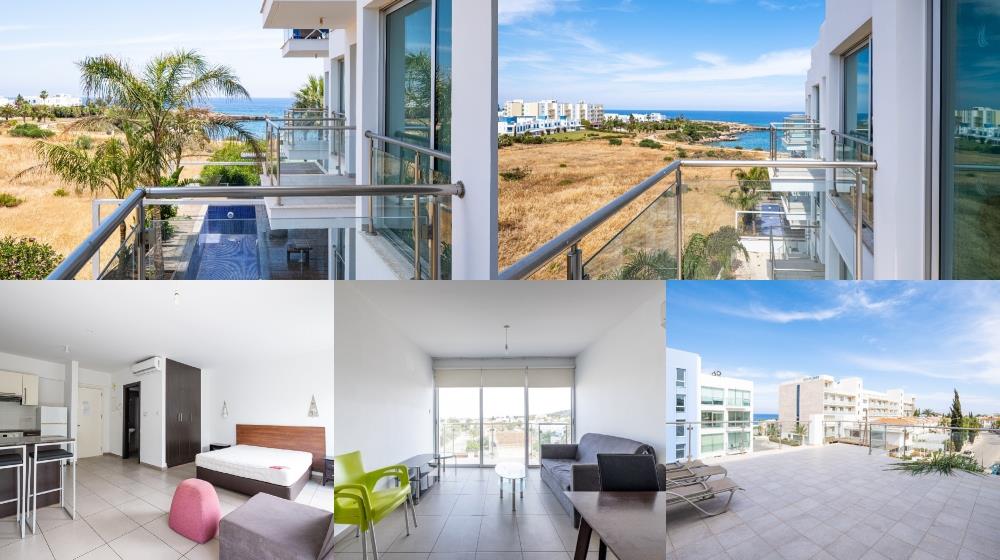 Το ακίνητο αφορά διαμέρισμα ενός υπνοδωματίου με πλευρική θέα στη θάλασσα. Βρίσκεται στον τρίτο όροφο του Block A και έχει εμβαδόν 45 τ.μ..