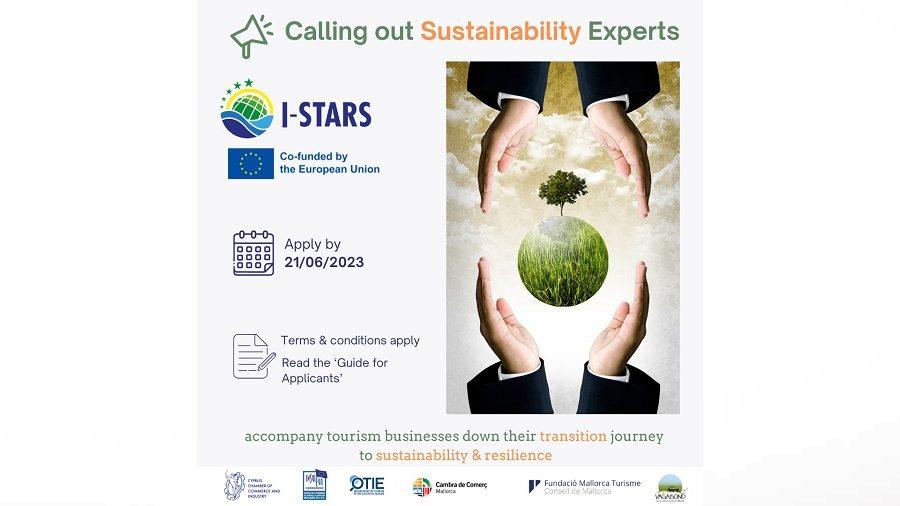 Στο παρόν στάδιο, το ΚΕΒΕ καλεί Εμπειρογνώμονες-Συμβούλους που ενδιαφέρονται να ενταχθούν στον Κατάλογο Εμπειρογνωμόνων Αειφορίας I-STARS, και οι οποίοι κατέχουν την εμπειρία να βοηθήσουν τις επιχειρήσεις τουρισμού να μεταβούν στην αειφορία, προσφέροντάς τους μια ποικιλία υπηρεσιών.