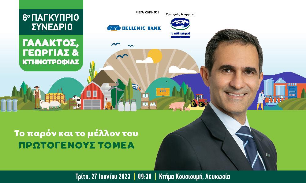 Η κορυφαία σύναξη των επαγγελματιών του πρωτογενούς τομέα στην Κύπρο είναι γεγονός, αφού το 6ο Παγκύπριο Συνέδριο Γάλακτος, Γεωργίας, Κτηνοτροφίας επιστρέφει με Μέγα Χορηγούς την Ελληνική Τράπεζα και τον Στρατηγικό Συνεργάτη Χαραλαμπίδης Κρίστης Λτδ. στο Κτήμα Κουσιουμή, Λευκωσία και για άλλη μια φορά θα εστιάσει στα σημαντικότερα ζητήματα αλλά και στα περιθώρια βελτίωσης της σημερινής κατάστασης.