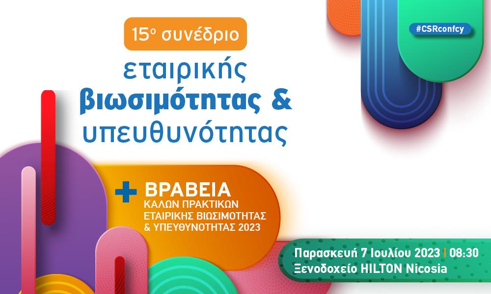 Η απονομή των «Κυπριακών Βραβείων Καλών Πρακτικών Εταιρικής Κοινωνικής Ευθύνης (ΕΚΕ) και Βιωσιμότητας θα πραγματοποιηθεί στις 7 Ιουλίου 2023, στο ξενοδοχείο Hilton Nicosia, στο πλαίσιο του 15ου Συνεδρίου για την Εταιρική Βιωσιμότητα & Υπευθυνότητα.