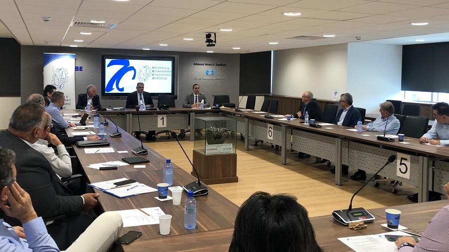 Το Διοικητικό Συμβούλιο του Εμπορικού και Βιομηχανικού Επιμελητηρίου Λευκωσίας (ΕΒΕΛ) σε συνεδρία της ολομέλειας του που πραγματοποιήθηκε χθες 08 Μαΐου 2023, συναντήθηκε με τον Υπουργό Εσωτερικών κ. Κωνσταντίνο Ιωάννου.