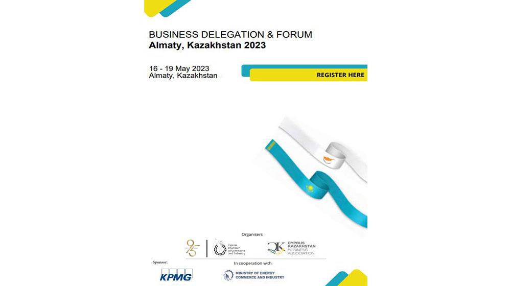 Το Κυπριακό Εμπορικό και Βιομηχανικό Επιμελητήριο (KEBE) σε συνεργασία με το Υπουργείο Ενέργειας, Εμπορίου και Βιομηχανίας (YEEB) και τον Επιχειρηματικό Σύνδεσμο Κύπρου-Καζακστάν διοργανώνουν τριμερής Επιχειρηματική Αποστολή στο Αλμάτι του Καζακστάν στις 16-19 Μαΐου 2023, της οποίας θα ηγηθεί ο Υπουργός Ενέργειας, Εμπορίου και Βιομηχανίας, κ. Γιώργος Παπαναστασίου στο πλαίσιο επίσκεψης στη χώρα για να παραστεί στην εκδήλωση "EU-Central Asia Economic Forum".