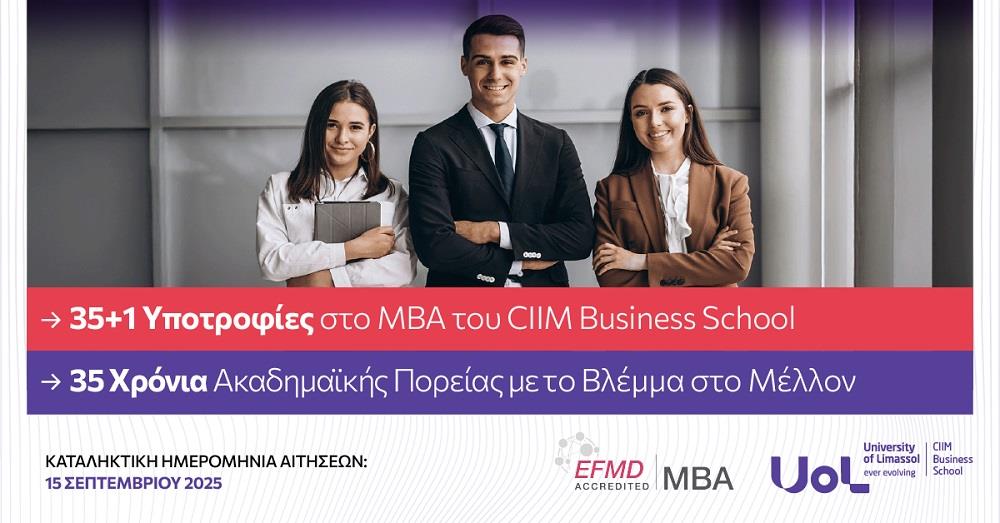 Δήλωση ενδιαφέροντος: https://www.uol.ac.cy/en/351-ypotrofies-sto-mba-tou-ciim-business-school-panepistimio-lemesougiortazoume-35-chronia-akadimaikis-poreias-me-to-vlemma-sto-mellon/