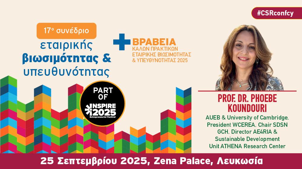 Στις 25 Σεπτεμβρίου 2025 στο Zena Palace στη Λευκωσία, θα παρουσιαστούν οι τελευταίες διεθνείς εξελίξεις σε θέματα Εταιρικής Βιωσιμότητας και Υπευθυνότητας, ιδιαίτερα υπό το φως των αλλαγών που επιφέρει το πακέτο απλούστευσης Omnibus, καθώς επίσης και διεθνή αλλά και εγχώρια case studies επιχειρήσεων από διάφορους κλάδους της οικονομίας που έχουν υιοθετήσει καινοτόμες πολιτικές και πρακτικές.