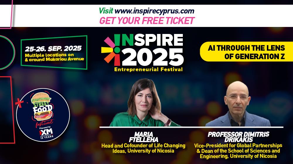 Στο INSPIRE 2025, το πιο φωτεινό φεστιβάλ επιχειρηματικότητας και καινοτομίας της Κύπρου, ανεβαίνει στη σκηνή ένα πάνελ που είναι κομμένο και ραμμένο για σένα – το «AI through the lens of Generation Z». Γιατί, ποιος άλλος έχει μεγαλύτερο λόγο να μιλήσει για το πώς θα μοιάζει το αύριο από τη γενιά που το ζει πρώτη και καλύτερη;
