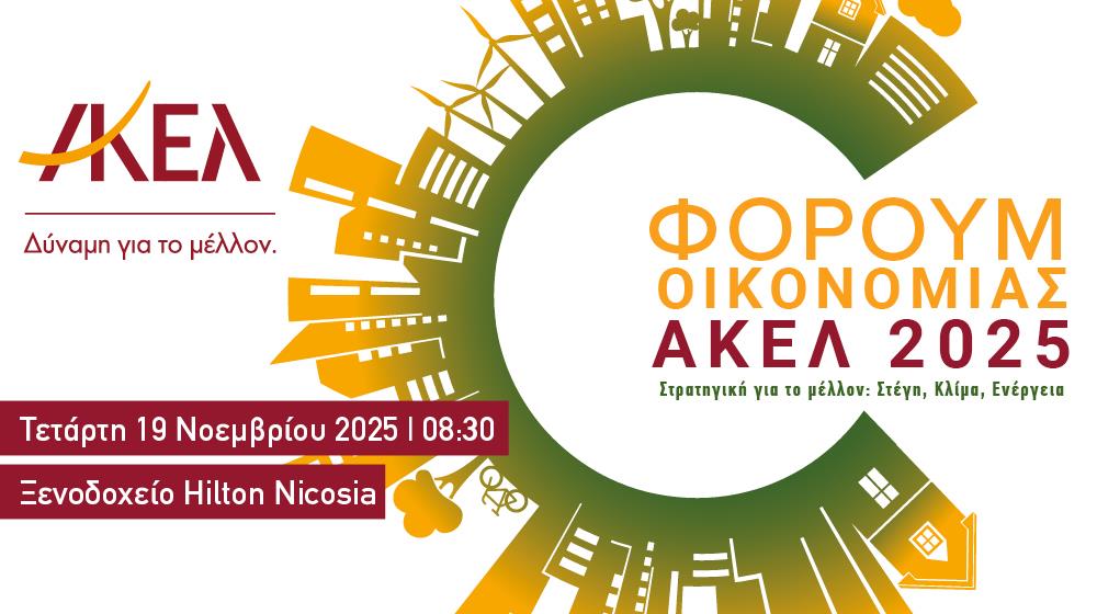 Στις κρίσιμες προκλήσεις που επηρεάζουν το σημερινό οικοσύστημα και τη μελλοντική πορεία της Κύπρου, με βασικούς άξονες τη στέγη, την κλιματική κρίση και την ενέργεια, θα εστιάσει το ΑΚΕΛ, που διοργανώνει το Φόρουμ Οικονομίας 2025 την Τετάρτη 19 Νοεμβρίου 2025, στο ξενοδοχείο Hilton Nicosia.