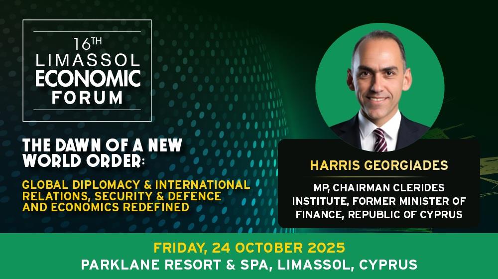 Στο Limassol Economic Forum 2025, ο Χάρης Γεωργιάδης θα συμμετάσχει στη συζήτηση για τις γεωπολιτικές και οικονομικές προκλήσεις της νέας εποχής, φέρνοντας μαζί του την εμπειρία ενός πολιτικού που έχει διαχειριστεί οικονομικές κρίσεις αλλά και την οξυδέρκεια ενός στοχαστή που παρακολουθεί τις παγκόσμιες εξελίξεις με νηφαλιότητα.