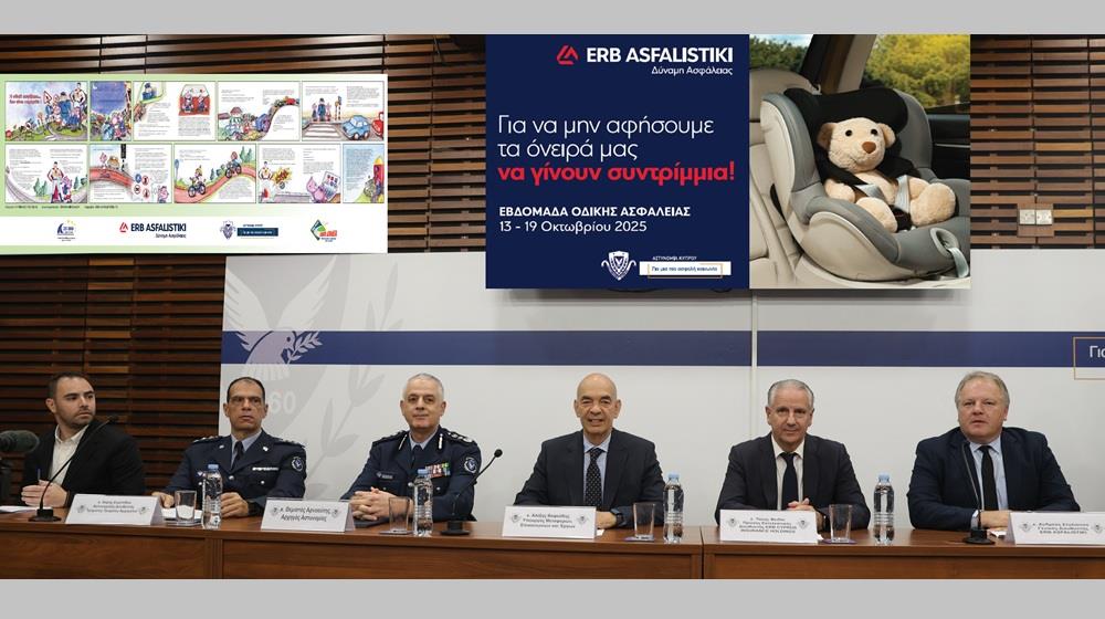Η ERB ASFALISTIKI, η μεγαλύτερη Ασφαλιστική Εταιρεία Γενικού Κλάδου στην Κύπρο και μέλος του Ομίλου EUROBANK, του μεγαλύτερου τραπεζοασφαλιστικού Ομίλου του τόπου, σε συνεργασία με την Αστυνομία Κύπρου Τμήμα Τροχαίας Αρχηγείου, για 26η συνεχόμενη χρονιά συνδιοργανώνουν την Εβδομάδα Οδικής Ασφάλειας, από τις 13 μέχρι τις 19 Οκτωβρίου 2025.