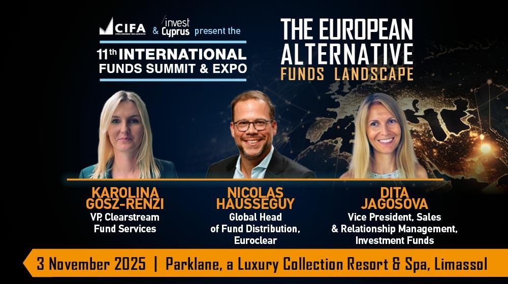 Στις 3 Νοεμβρίου 2025, το 11ο International Funds Summit & EXPO στο Parklane Resort & Spa υποδέχεται μερικά από τα πιο ηχηρά ονόματα της ευρωπαϊκής χρηματοοικονομικής σκηνής, σε ένα πάνελ που υπόσχεται… κεφαλαιώδεις αποκαλύψεις: το “AIFs: Capital Raising & Cross-Border Distribution”, με ομιλητές τους Karolina Gosz-Renzi (Clearstream Fund Services), Nicolas Hausseguy (Euroclear) και Dita Jagosova (Clearstream Banking Singapore).