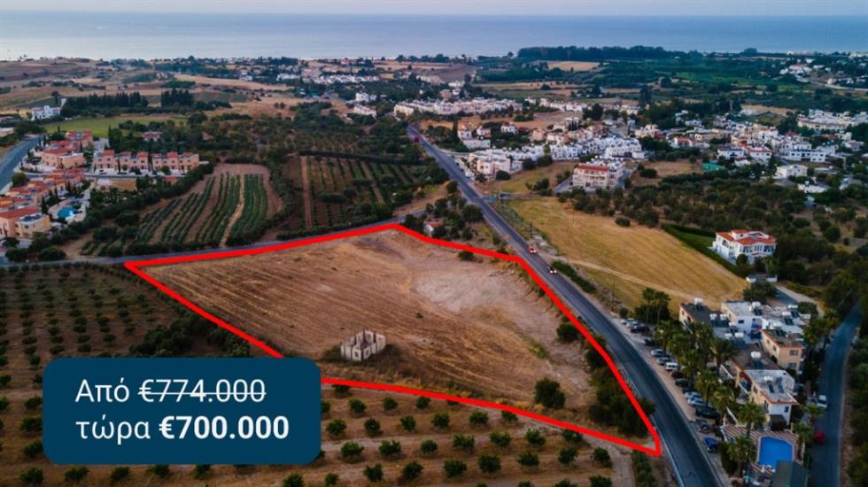 Έχει συνολικό εμβαδόν 9,150 τ.μ. και αποτελεί μια φανταστική ευκαιρία ανάπτυξης με πανοραμική θέα στη θάλασσα και εύκολη πρόσβαση προς το κέντρο της Πάφου.