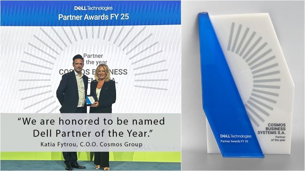 Η Cosmos Business Systems τιμήθηκε με τη διάκριση “Dell Partner of the Year” στο ετήσιο Partner Event της Dell Technologies, επιβεβαιώνοντας την ηγετική της θέση στην αγορά ολοκληρωμένων λύσεων πληροφορικής και την πολυετή, στρατηγική συνεργασία με τη Dell Tecnologies, ως Dell Titanium Partner , που είναι και η ανώτατη διεθνής βαθμίδα σε επίπεδο συνεργατών.