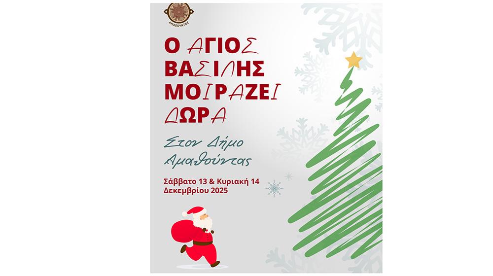 Η γιορτή συνεχίζεται το επόμενο Σαββατοκύριακο, 13 και 14 Δεκεμβρίου 2025, όταν το Λεωφορείο του Άγιου Βασίλη θα επισκεφθεί όλα τα Δημοτικά Διαμερίσματα του Δήμου Αμαθούντας, μοιράζοντας δώρα και χαρά.