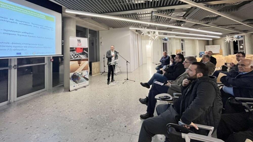 Με επιτυχία πραγματοποιήθηκε την Τρίτη, 9 Δεκεμβρίου, η εκδήλωση παρουσίασης του προγράμματος σπουδών «Σχεδιασμός και Τεχνολογία CNC – Ξυλουρική Βιομηχανία», που διοργάνωσαν τα ΜΙΕΕΚ Λεμεσού σε συνεργασία με τον Σύνδεσμο Βιομηχάνων Αγίου Αθανασίου.