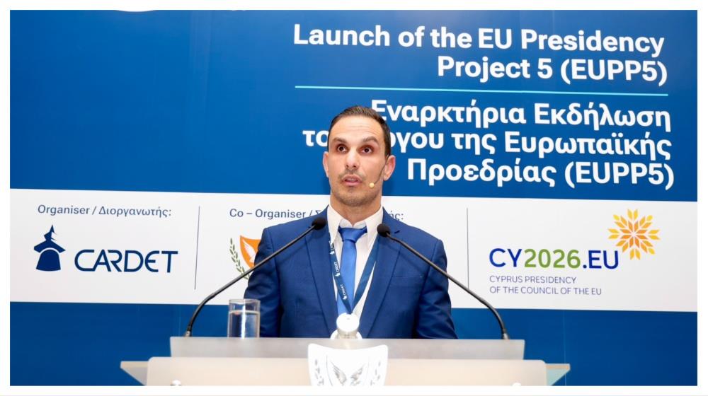 O Επικεφαλής Στρατηγικών Συνεργασιών και Ανάπτυξης του CARDET, Δρ. Μαρίνος Παπαϊωακείμ, παρουσίασε το EU Presidency Project 5, αναλύοντας το περιεχόμενο, τους στόχους και τις βασικές δράσεις της πρωτοβουλίας στην Κύπρο.