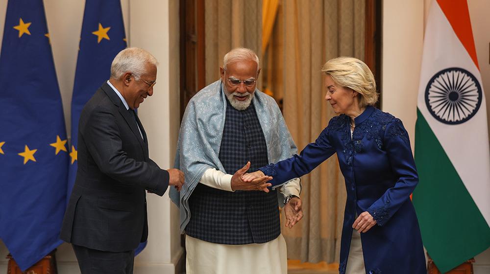 Η Ούρσουλα φον ντερ Λάιεν και ο Πρόεδρος του Ευρωπαϊκού Συμβουλίου Αντόνιο Κόστα ήταν επίτιμοι προσκεκλημένοι στους εορτασμούς για την 77η Ημέρα της Δημοκρατίας της Ινδίας στις 26 Ιανουαρίου, σηματοδοτώντας την πρώτη συμμετοχή ηγετών της ΕΕ στο γεγονός και υπογραμμίζοντας την εμβάθυνση των διμερών σχέσεων.