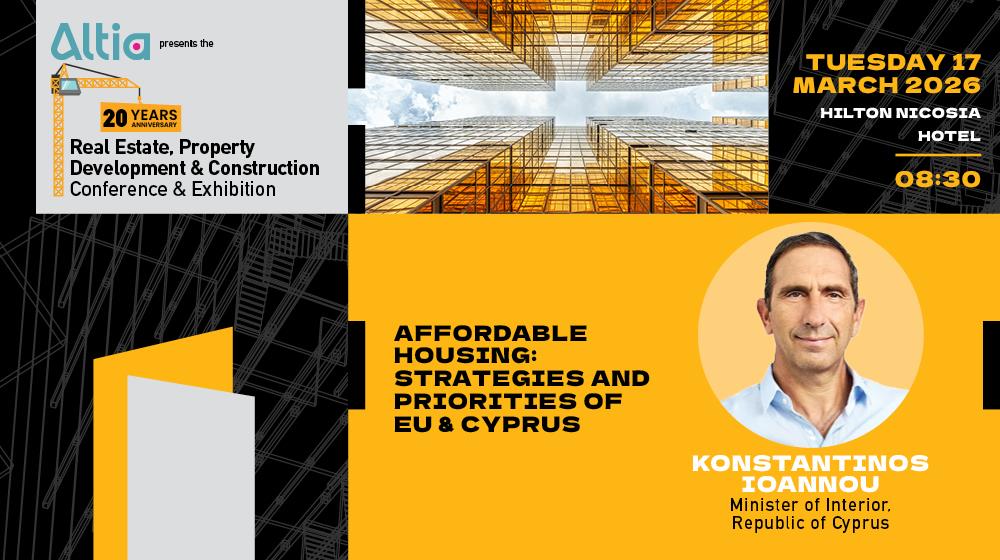 Το θέμα αναδεικνύεται μέσα από την ομιλία του Κωνσταντίνου Ιωάννου, Υπουργού Εσωτερικών της Κυπριακής Δημοκρατίας, στο πλαίσιο του 20ού Real Estate, Property Development & Construction Conference & Exhibition, που παρουσιάζει η Altia. Στην παρουσίαση θα τεθούν οι στρατηγικές κατευθύνσεις της Ευρωπαϊκής Ένωσης για τη στέγαση, καθώς και τις πολιτικές που εφαρμόζει η κυπριακή κυβέρνηση για την ενίσχυση της πρόσβασης των πολιτών σε αξιοπρεπή και οικονομικά προσιτή κατοικία.