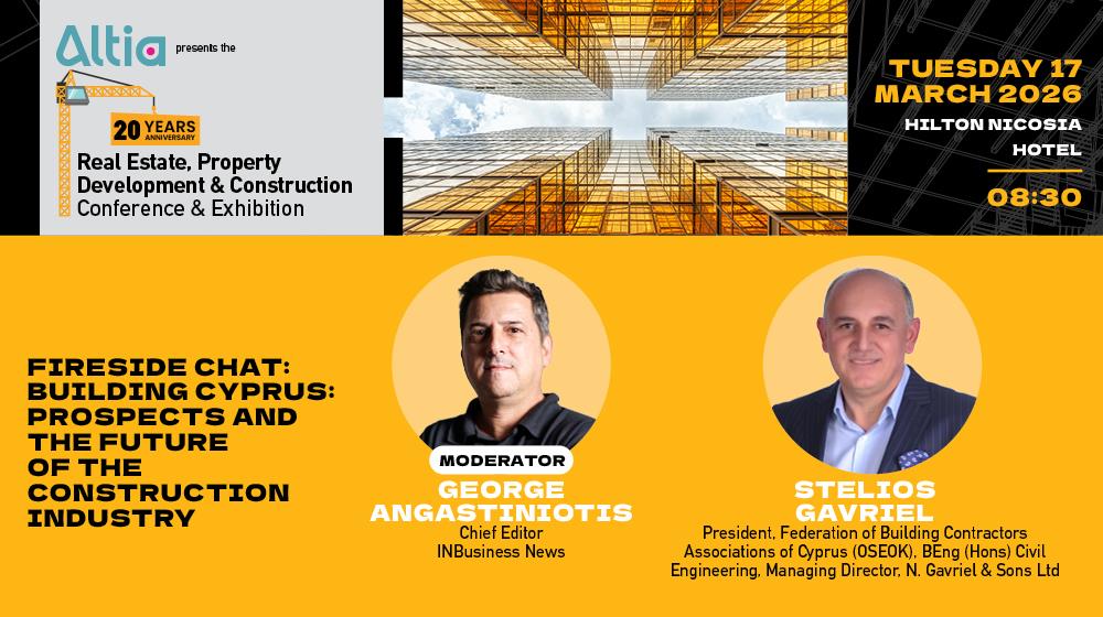 Οι εξελίξεις αυτές τίθενται στο προσκήνιο μέσα από το fireside chat με τίτλο «Building Cyprus: Prospects and the Future of the Construction Industry», στο πλαίσιο του 20ού Real Estate, Property Development & Construction Conference & Exhibition, που παρουσιάζει η Altia. Η συζήτηση επικεντρώνεται στις προοπτικές του κατασκευαστικού κλάδου, στις προκλήσεις που αντιμετωπίζουν οι επαγγελματίες και στις ευκαιρίες που δημιουργούνται μέσα από την ανάπτυξη νέων έργων και την ενίσχυση των επενδύσεων.
