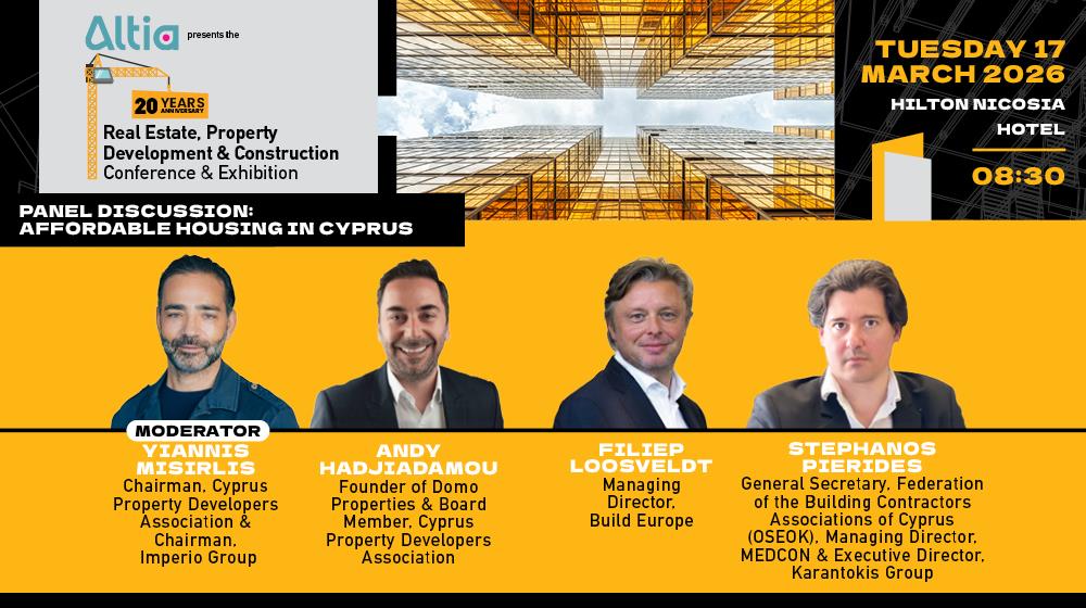 Στο πλαίσιο του 20ού Real Estate, Property Development & Construction Conference & Exhibition, η ενότητα «Affordable Housing in Cyprus» συγκεντρώνει κορυφαίους εκπροσώπους του κλάδου για να παρουσιάσουν πολιτικές, πρωτοβουλίες και καλές πρακτικές που προωθούν την προσφορά κατοικιών και ενισχύουν τη βιώσιμη αστική ανάπτυξη.